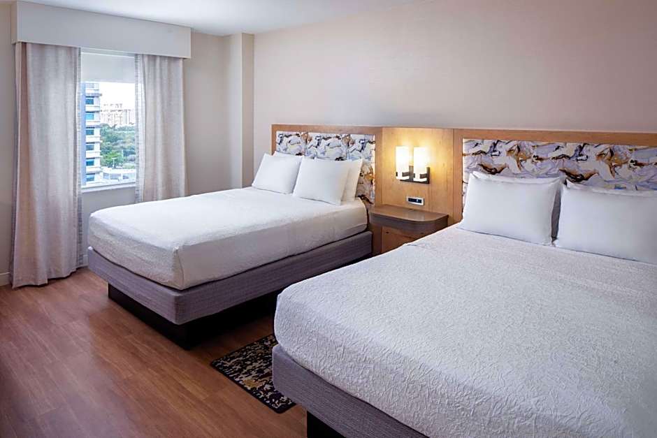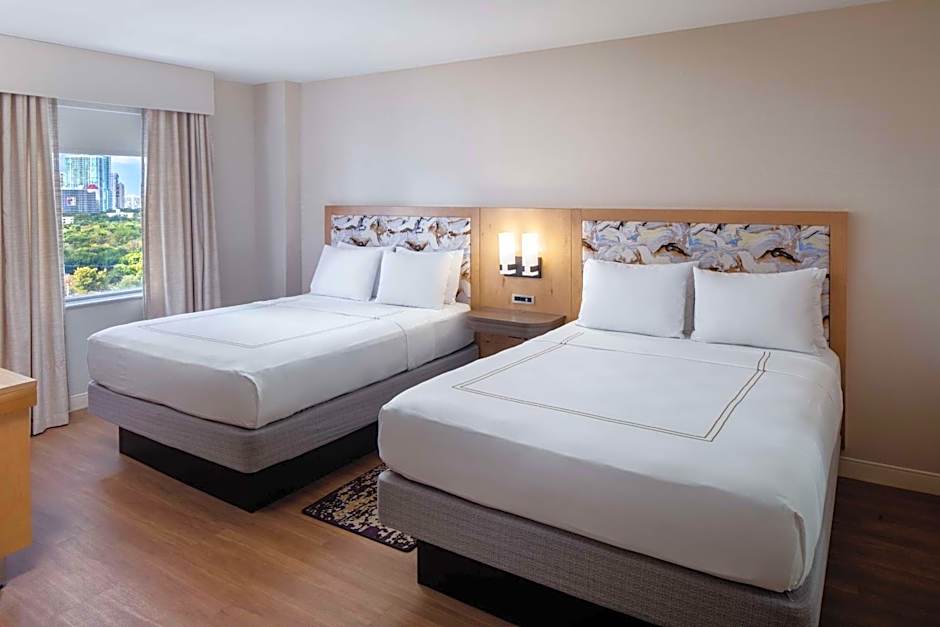 This suite features a 42-inch flat-screen cable TV, spa bath, sofa bed, small refrigerator, microwave, and tea- and coffee-making facilities.